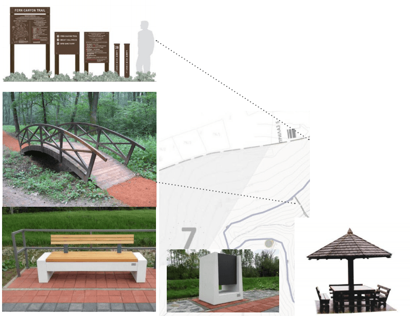 Šumske staze koje postoje u ovom parku trebaće iskrčiti i urediti, izgraditi dodatne trim staze, postaviti potrebni mobilijar. Dužina staze za šetnju iznosi oko tri kilometra. Dodatne staze biće projektovane namjenski, u skladu sa potrebama potencijalnih korisnika za rehabilitacijom i fizikalnom terapijom, sa maksimalnim nagibom do 5%.