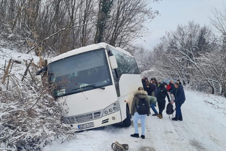 U mjestu Snagovo kod Zvornika autobus koji je prevozio učenike završio je u kanalu pored puta.