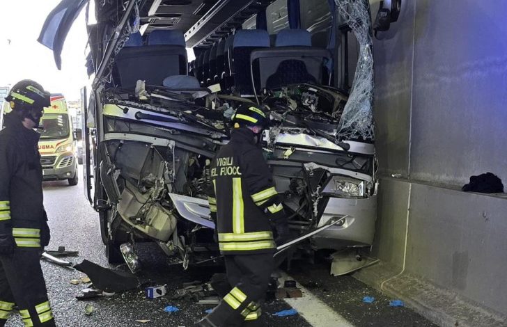 Učiteljica stara 43 godine poginula je na mjestu, dok su vozač autobusa i dvoje djece povrijeđeni, javljaju talijanski mediji.