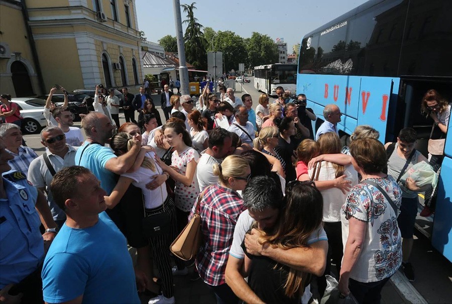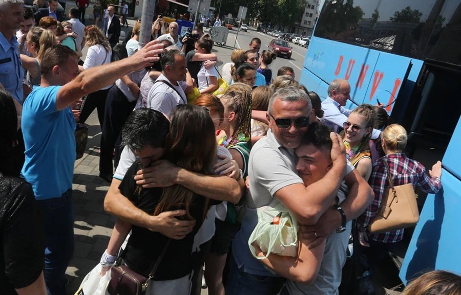 Djeca su uplakana izašla iz autobusa i potrčala roditeljima, koji su ih dočekali u suzama.