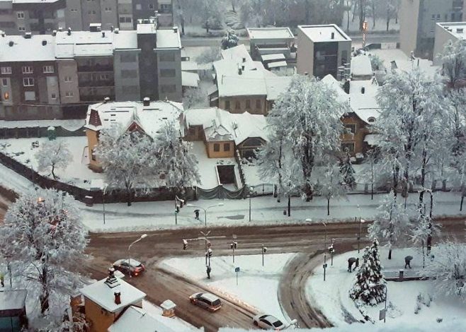 Tokom ranijih jutarnjih časova bilo je vjetrovito i oblačno sa kišom koja je u nastavku jutra prešla u susnježicu i snijeg.