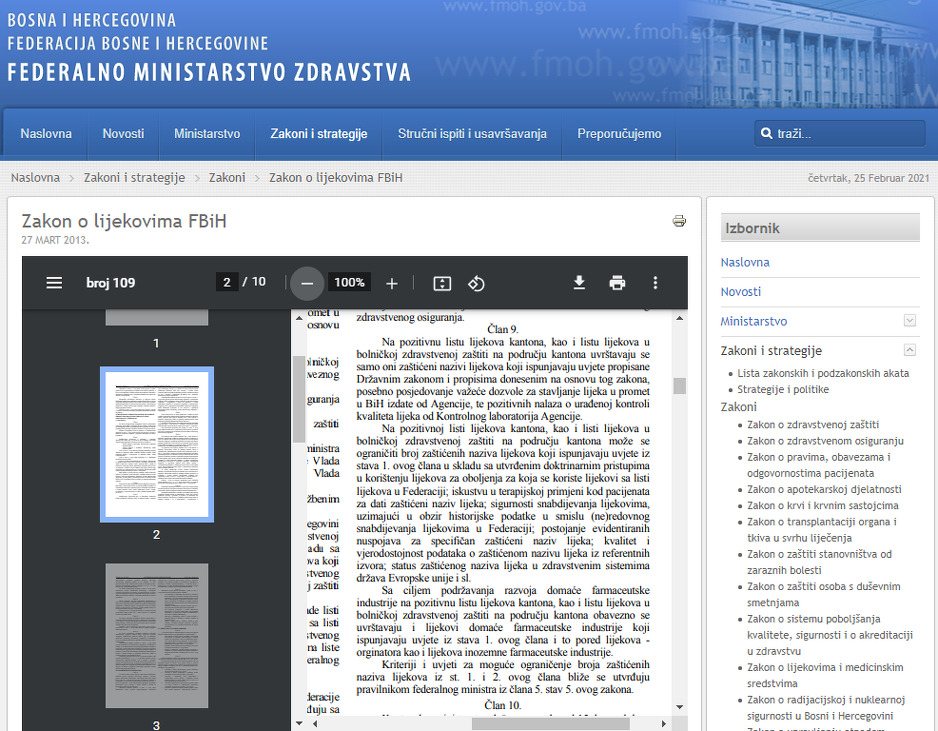 Posebno je bitno u ovom kontekstu istaknuti kako Član 9. Zakona o lijekovima FBiH iz 2012. godine propisuje obavezu države da nabavi domaće lijekove, ali se u praksi ovaj zakon gotovo i ne poštuje.