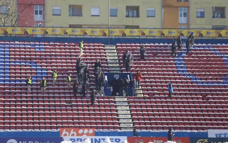 Meč u Banjaluci prekinut je u 28. minutu zbog toga što su navijači domaćih grudvama gađali pomoćnog sudiju.