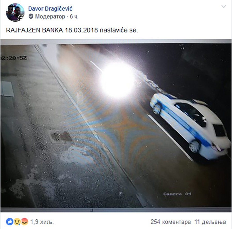 Takođe, objavio je fotografiju koja je napravljena iz snimka s videonadzora Rajfajzen banke u Banjaluci koji policija nije htjela izuzeti, prenosi Klix.