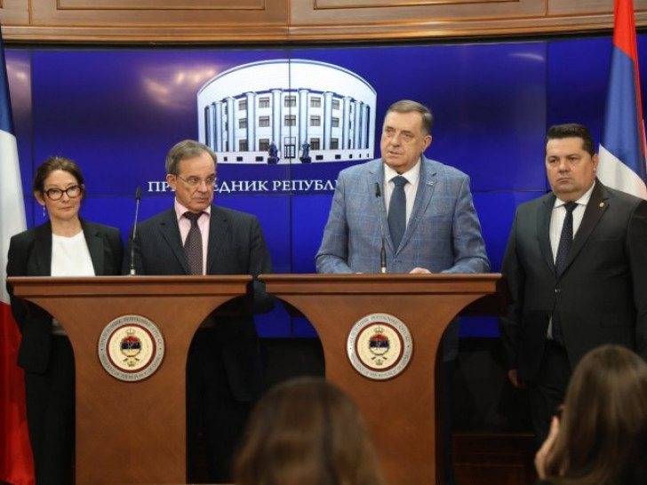 – Zahvalan sam za interesovanje koje evroparlamentarci pokazuju za situaciju u BiH, koji razumiju. BiH nema pravo na Sud i Tužlaštvo, Agenciju za istrage i zaštitu, Obavještajno-bezbjednosnu agenciju i Oružane snage BiH. Srpska ima na to pravo i tako se ponaša – rekao je Dodik na konferenciji za novinare nakon sastanka sa evroparlamentarcima iz Francuske Paskal Pjerom i Tijerijem Marijanijem.