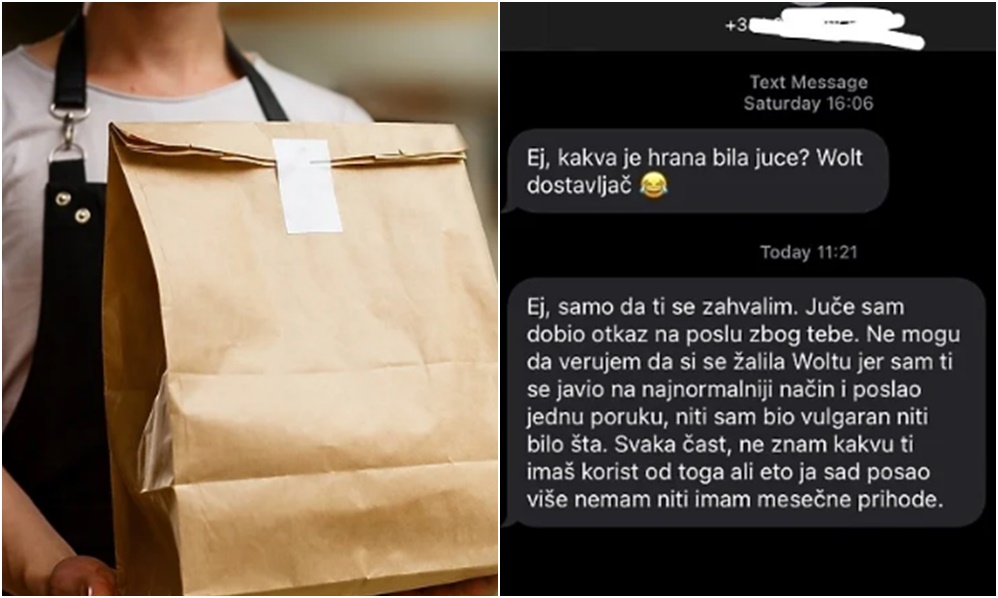 Naime, dan nakon što je poručena hrana bila predata na adresi naručioca, dostavljač je devojci poslao poruku – Ej, kakva je hrana bila juče? – potpisujući se kao „Wolt dostavljač“.
