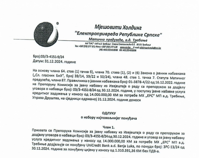 U toj odluci se ne navodi pod kojim uslovima će kredit biti realizovan niti u koje svrhe će se iskoristiti. Ono što je poznato je da će banci po osnovu troškova pripasti 1,53 miliona KM.