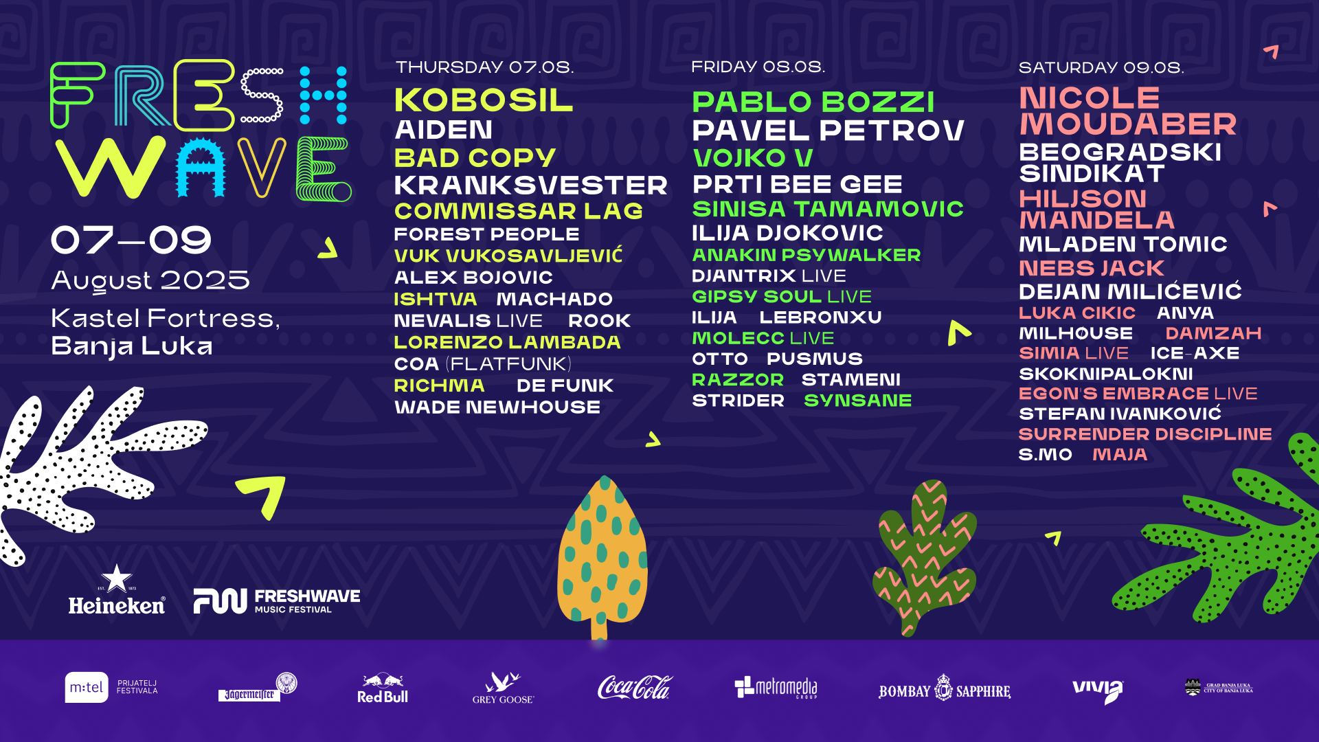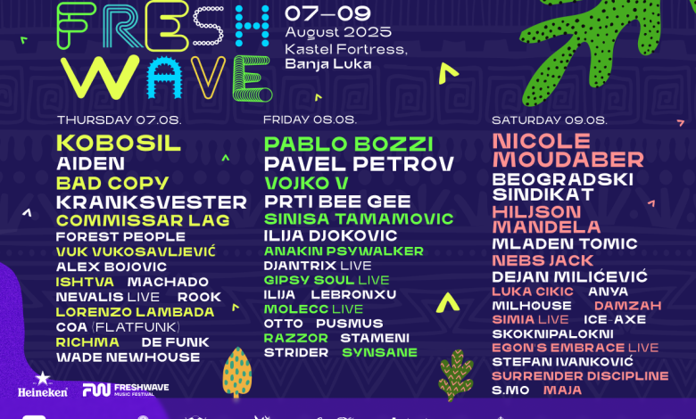 "Freshwave" festival, koji se od 7. do 9. avgusta održava na tvrđavi Kastel u Banjaluci, predstavio je konačni program i još jednom potvrdio svoj status najvećeg regionalnog festivalskog događaja ovog ljeta. Sa preko pedeset izvođača raspoređenih na pet jedinstvenih festivalskih bina, "Freshwave" će okupiti imena koja predstavljaju sam vrh globalne elektronske scene, ali i regionalne hip-hop legende, obećavajući tri nezaboravna festivalska dana ispunjena vrhunskom muzikom, adrenalinom i atmosferom koja se pamti.