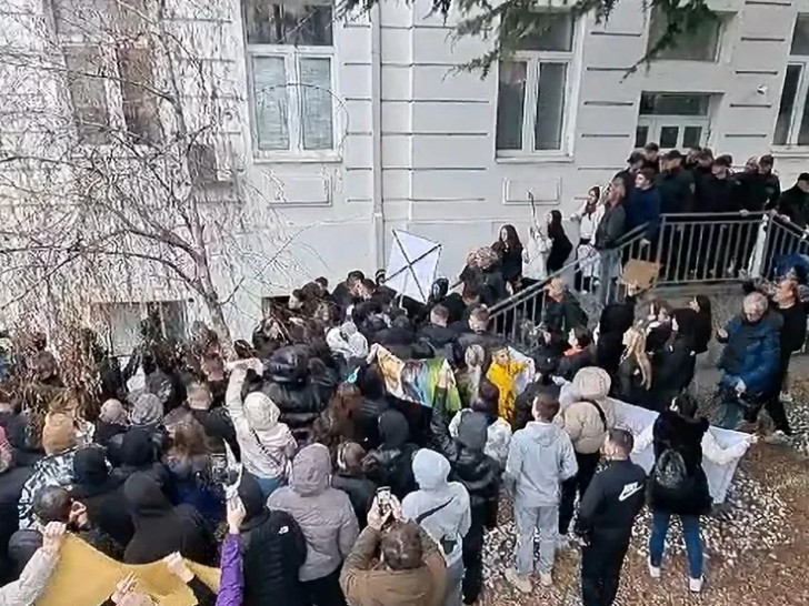 Nekoliko desetina, uglavnom mladih, nalazi se ispred opštine, a policija stoji ispred ulaza i brani im da uđu u zgradu.