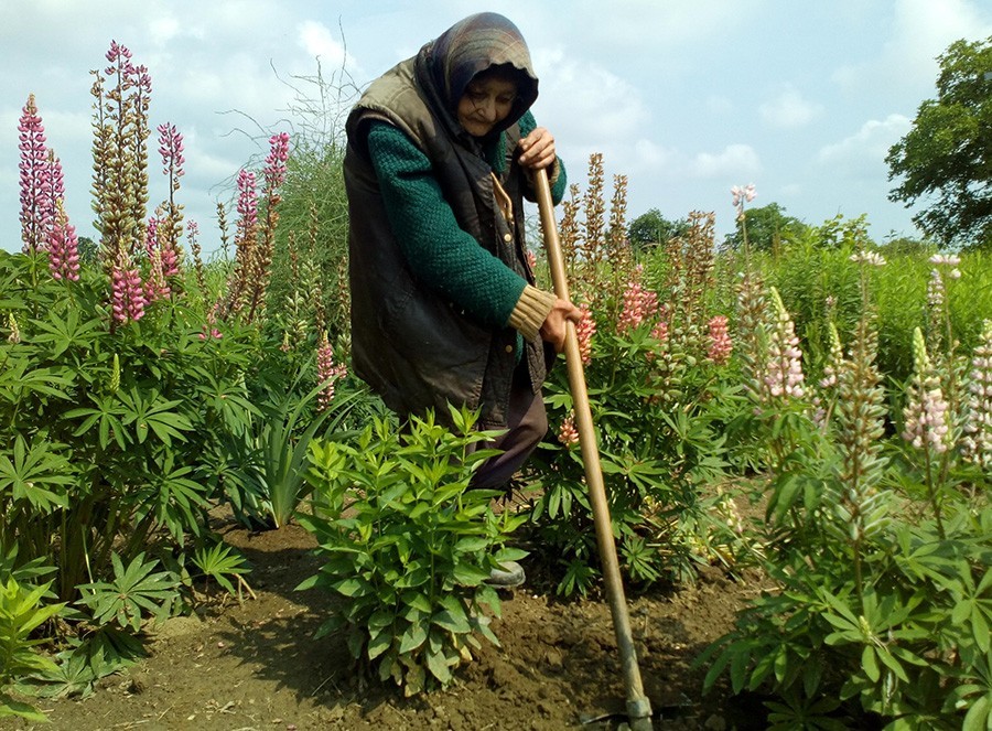 Satima se Jeroslava, rođena u Ćelinovcu pod Kozarom, ne odvaja od motike kako bi sve u njenom vrtu bilo što ljepše, zanosnije, raznovrsnije, bujalo i stalno cvjetalo.