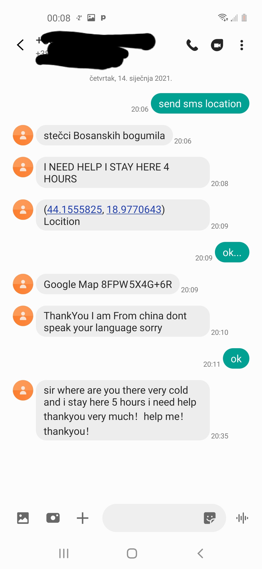 "Nekako smo se razumjeli da mi pošalju kordinate na teefon nakon čega smo uspjeli da ih nadjemo nakon tri sata potrage…Dovezli smo ih u Vatrogasni dom, gdje su se ogrijali i uputili prema Sarajevu", navodi Mirko Đurić, koji je BN-u poslao ovu informaciju i fotografije.
