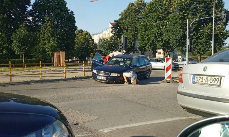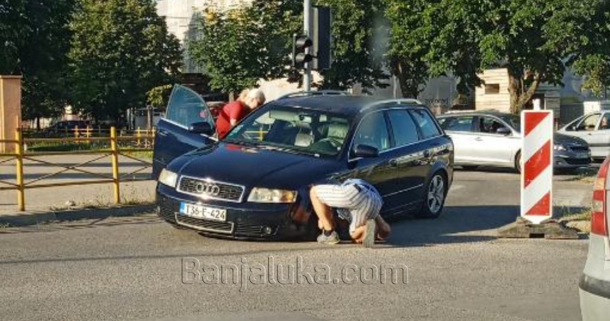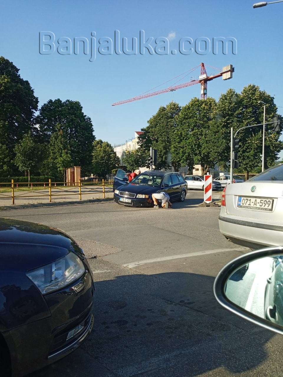 Automobilu Audi prednji lijevi točak bukvalno je potonuo, dok se uključivao na saobraćajnicu sa četiri trake, na raskrsnici kod Verna i Auto Pijace.