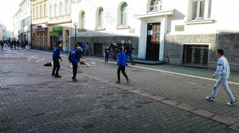 Dječaci su iskoristili sunčanu subotu i zaigrali utakmicu u Gospodskoj ulici u centru Banjaluka.