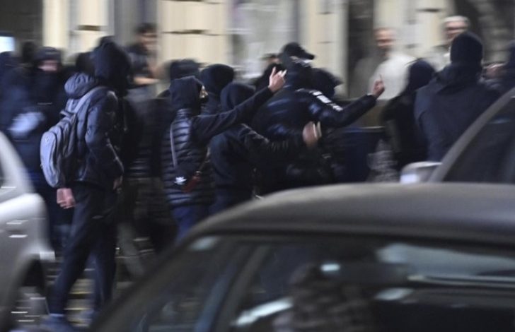 U jednom trenutku pojavili su se muškarci u crnim kapuljačama, koji su i pokušali ući u prostorije, ali su u tome spriječeni. Nakon toga su počeli da skandiraju "Nezavisna država Hrvatska".
