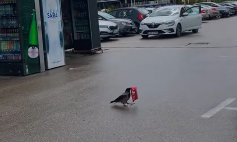 Vrana je ukrala paketić, a sudeći po komentarima, niko joj lopovluk previše ne zamjera., prenosi Večernji.