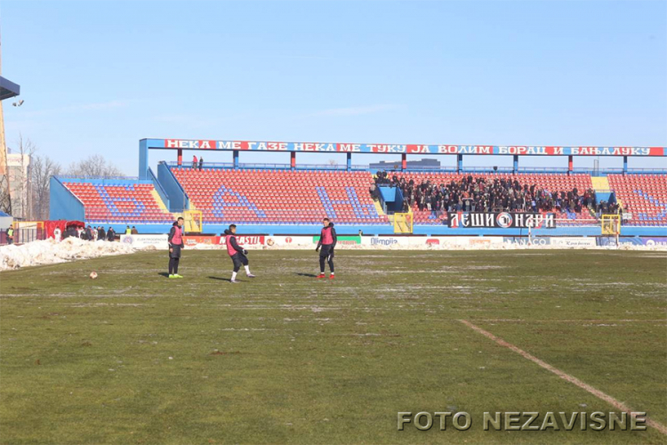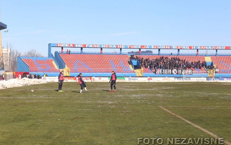 Na istočnoj tribini, onoj na kojoj su najvjerniji navijači Borca bili sve do početka ove sezone, kada su premješteni na sjevernu, istaknut je transparent sa natpisom “Jedan od nas”.