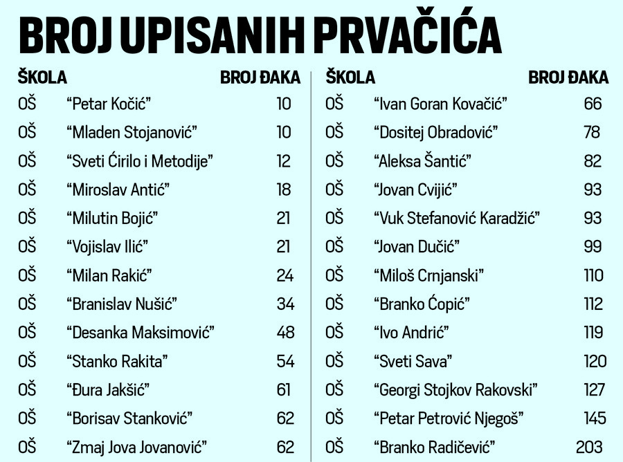 Navela je da je ove i prošle godine upisan identičan broj prvačića – 21.