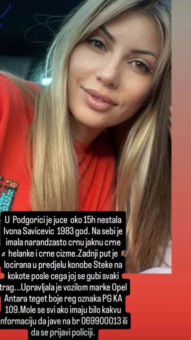 Podgoričanka Ivona Savićević nestala je juče oko 15 sati u Podgorici.