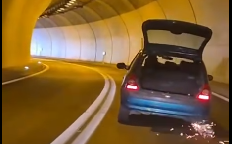 Nevjerovatna scena snimljena je na putu u Hrvatskoj, gdje je vozačica kilometrima vozila bez guma, sa otvorenim gepekom.