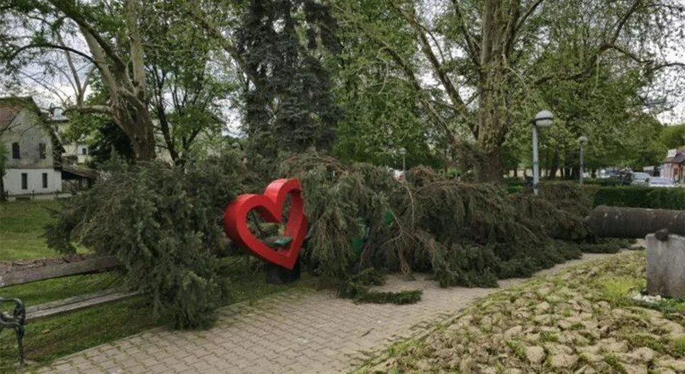 Jak vjetar u Kozarskoj Dubici iščupao je nekoliko stabala, jedno drvo palo je u parku u centru grada, a jedno kod Autobuske stanice.
