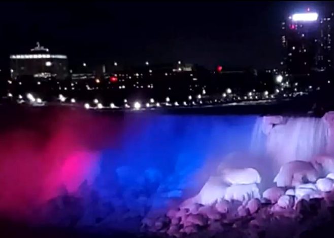 Na Sretenje, u čast Dana državnosti Srbije, jedna od najvećih svjetskih prirodnih atrakcija, Nijagarini vodopadi u Kanadi, zasijali su bojama srpske trobojke.
