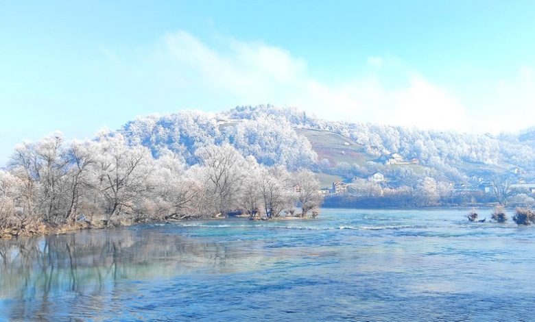 Rijeka Una je tiho tekla kroz maglu, dok su obale bile uokvirene zaleđenom travom i granjem, stvarajući prizore koji podsjećaju na razglednice zimskih bajki.