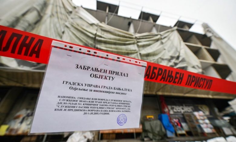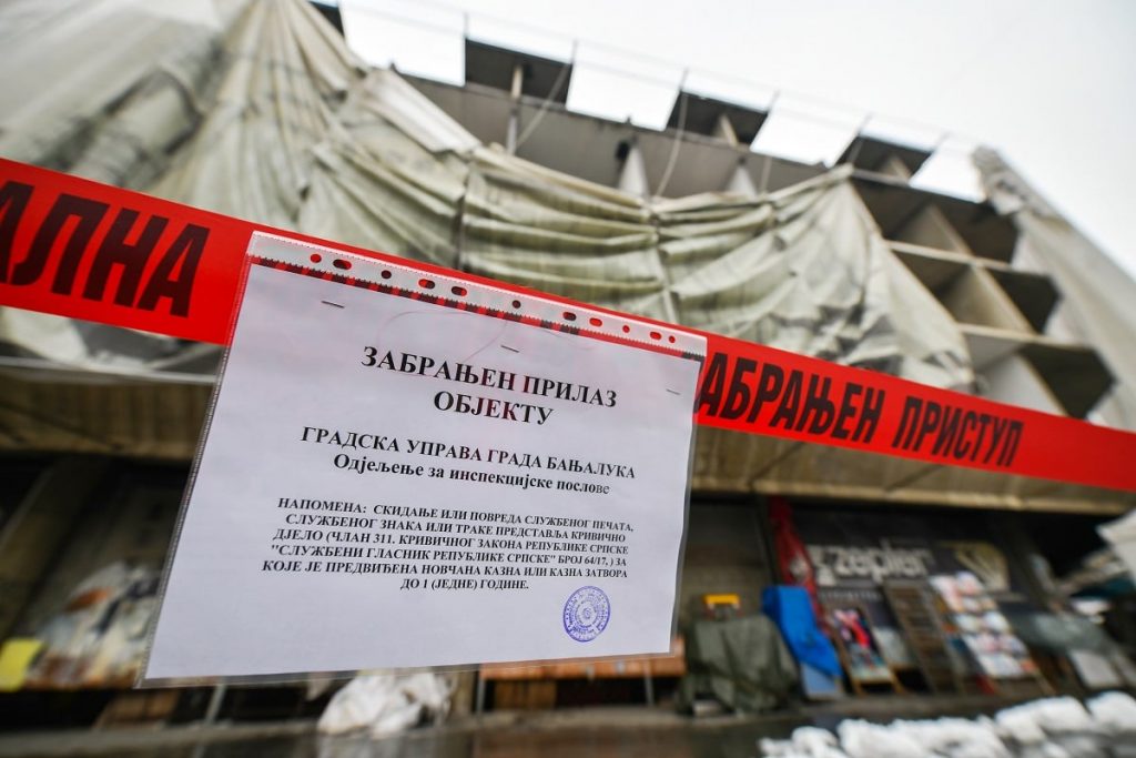 Urbanističko-građevinska inspekcija i Komunalna policija zabranili su prolaz pješaka na dijelu banjalučkog Trga Krajine i parkinga uz hotel „Palas“, jer su oštećene reklame na ovom hotelu.
