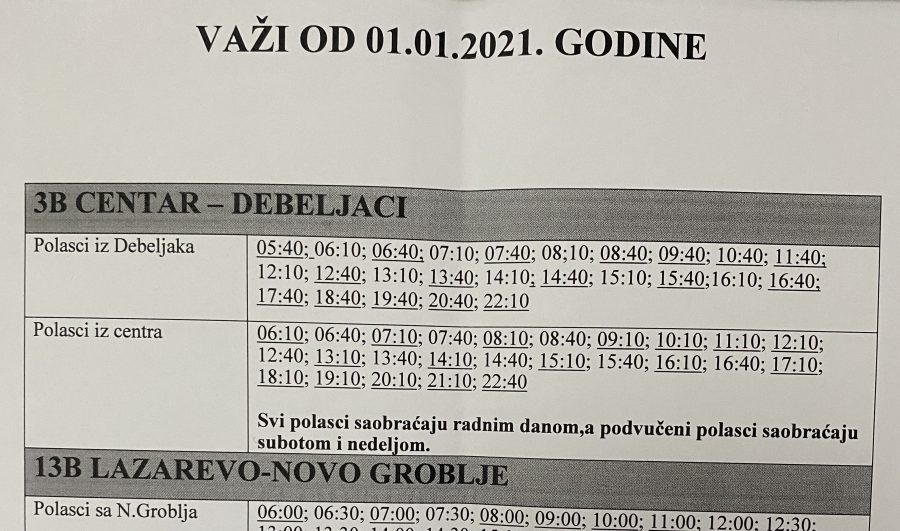 Naime, standardni red vožnje radnim danima na liniji 3B bio je na svakih pola sata, a kao što se vidi iz priloženog, izbačeni su polasci iz Debeljaka u: