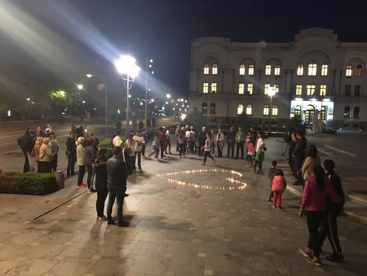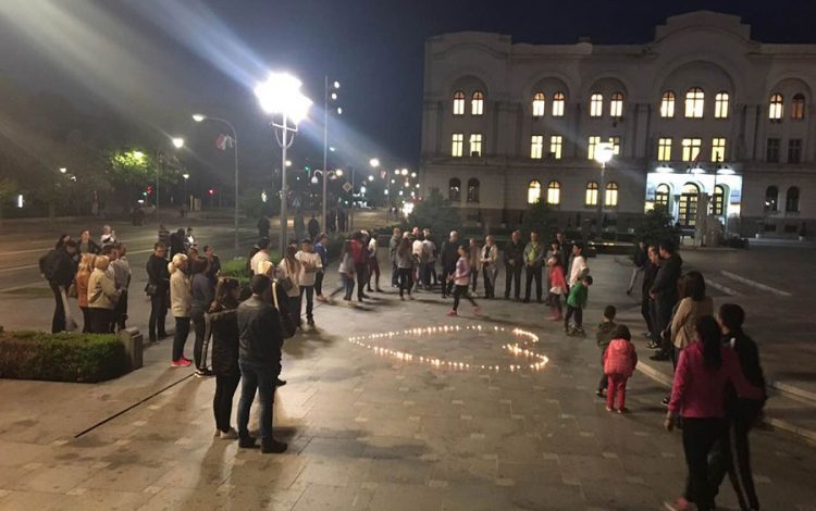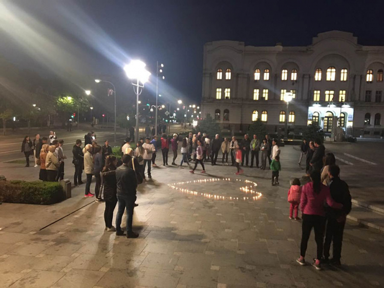 Nekolicina građana je zapalila svijeće i ostavila ih u obliku srca na platou ispred Hrama.