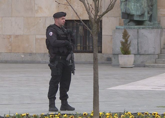 Policajci su raspoređeni oko Palate Republike, a tu su parkirana i policijska vozila.