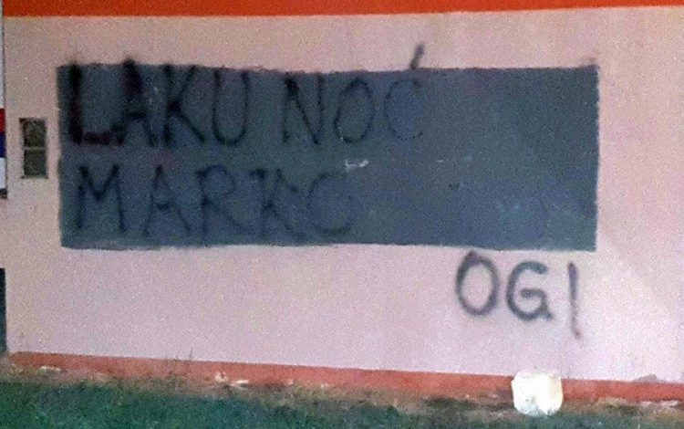 Grafit "Laku noć Marko, Ogi" osvanuo je jutros na objektu u kojom se nalazi sjedište DNS-a u Banjaluci.
