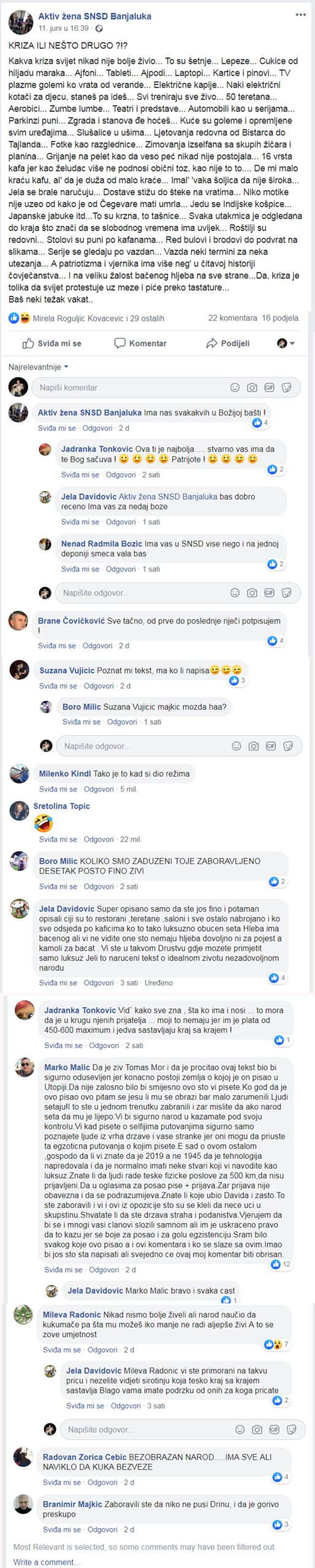 Zanimljiv post na svoj Fejsbuk profil postavio je 11. juna Aktiv žena SNSD Banjaluka.