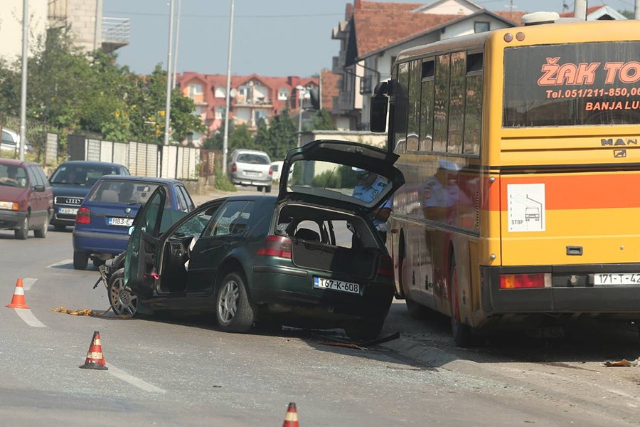 Novinar Srpskainfo sa lica mjesta javlja da su u nesreći učestvovali autobus “Žak turs” koji vozi na liniji broj 28 i automobil “golf 4” koji je potpuno uništen.