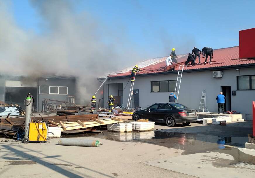 Požar je izbio pored firme “Sky Technology”, a zatim se proširio i na krovnu konstrukciju i zahvatio zgradu koja se nalazi pored firme.