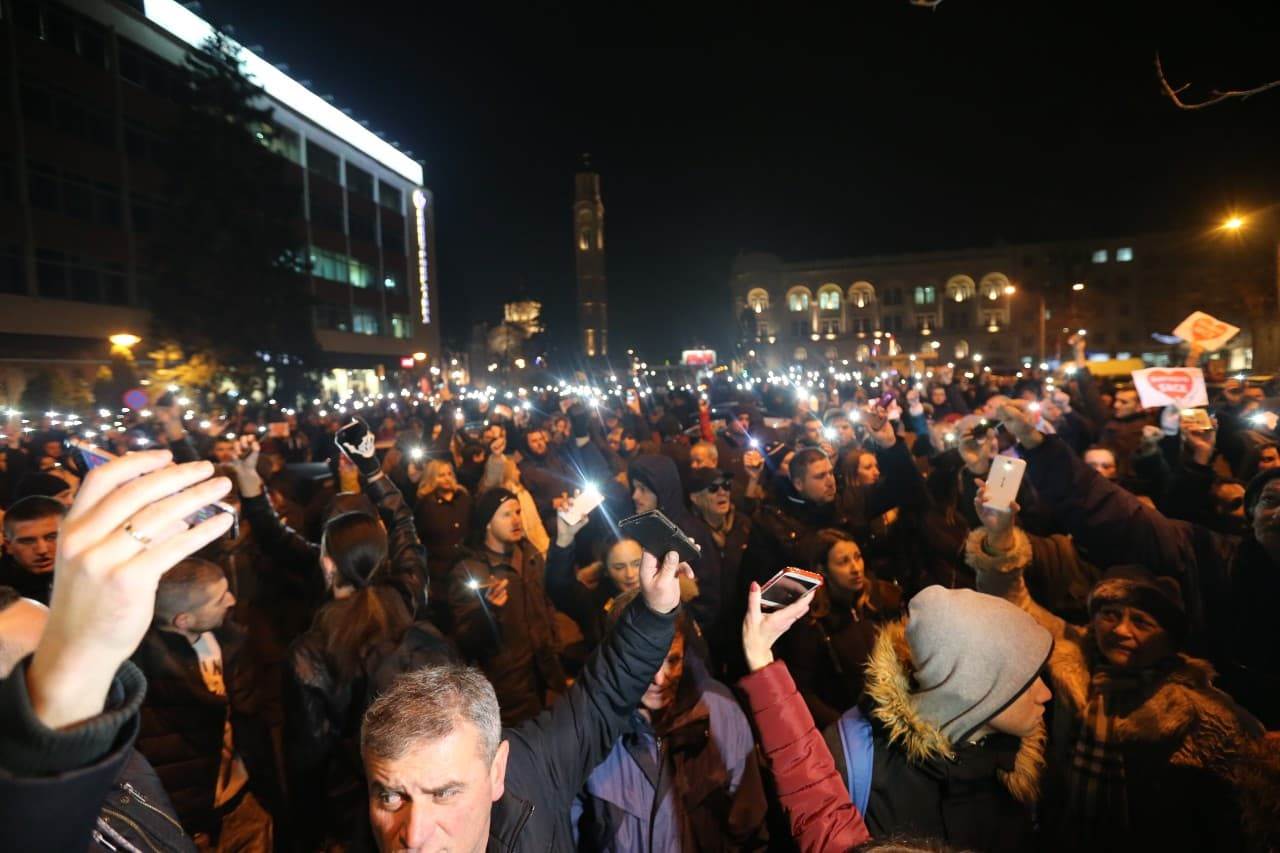 17:46 Na Trgu je nekoliko desetina građana. Oni uzvikuju: pravda, pravda. Pjeva se Davidova pjesma. Davor traži da policija uhapsi sve "ubačene elemente".