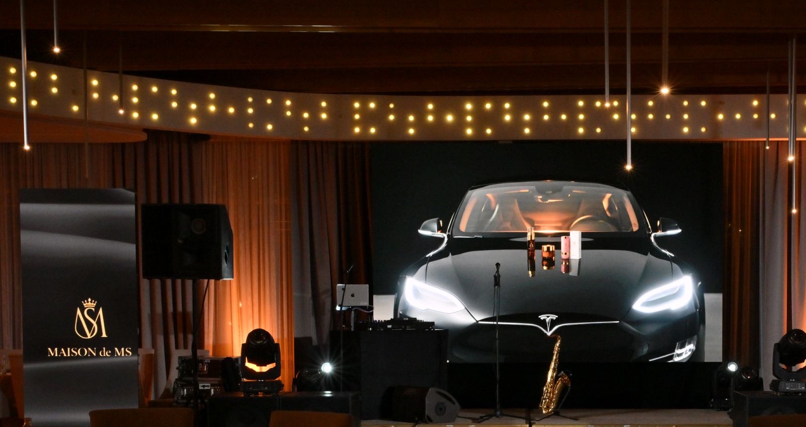 Pored lansiranja, gosti večeri su imali priliku i da se upoznaju sa novim modelom automobile Tesla, čiji je zastupnik Kibost Car iz Beograda, partner brenda Maison de MS.