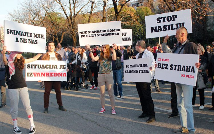 Organizatori okupljanja su podsjetili da se u prva tri mjeseca u Crnoj Gori dogodilo 12 eksplozija, šest napada vatrenim oružjem, da su povrijeđene četiri, a ubijene tri osobe.