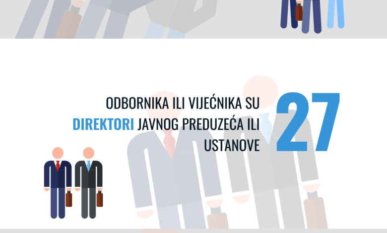 Od svih funkcionera koji su osvojili mandat na prošlogodišnjim izborima, 27 ih dodatno obavlja funkciju direktora javnog preduzeća ili ustanove, 20 odbornika su članovi upravnog odbora u javnim ustanovama, dok su dva članovi nadzornog odbora u javnom preduzeću.