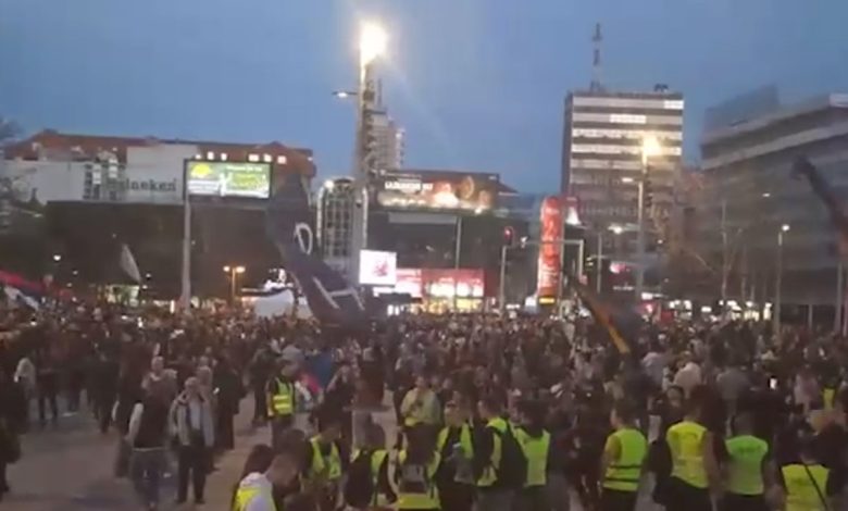 Zato je, kako javlja dopisnik RTS-a, na protestu na Trgu republike najavljeno da će biti održano nekoliko govora posle čega su učesnici skupa pozvani da krenu na Ušće gde bi trebalo da se sretnu sa kolonom iz Zemuna.