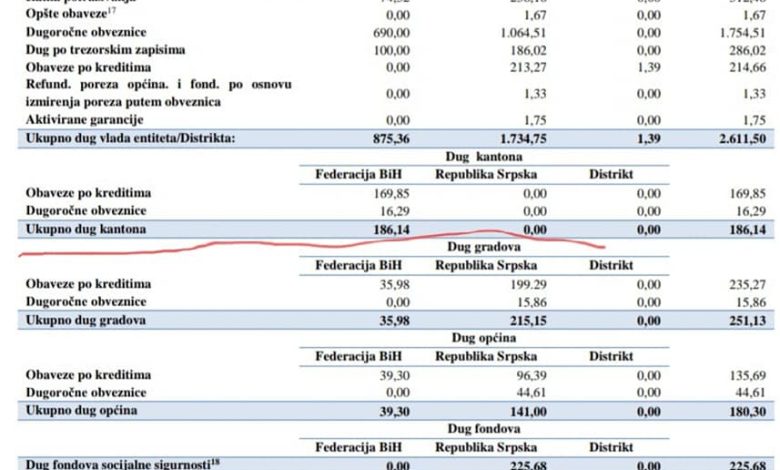 – Ako bolje pogledamo tabelu koja pokazuje unutrašnji dug po entitetima, vidjećemo da je za FBiH prikazan i dug kantona, dok je ovaj dug za Srpsku naravno 0 jer nemamo kantone. Ovo ukazuje na činjenicu da su podaci potpuno uporedivi – navodi Trivićeva.