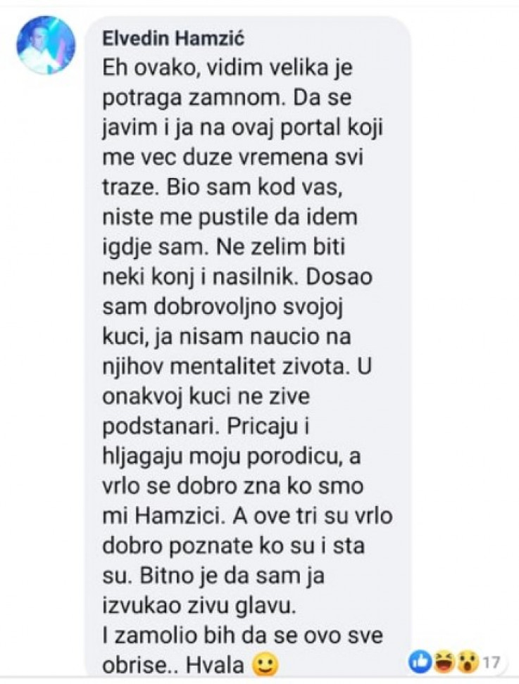 Porodica Elvedina Hamzića nije željela komentarisati ove navode. Inače, na Facebook profilu ovog mladića danas je obrisana objava koju je podijelio njegov prijatelj 16. januara, a riječ je o apelu za njegov pronalazak.
