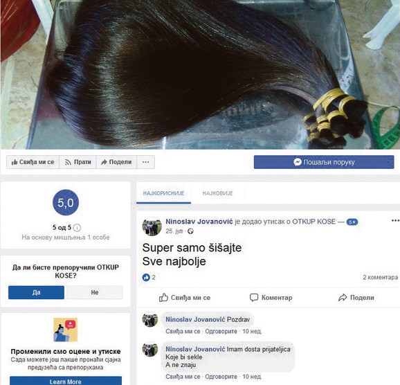 A da na Fejsbuku ne miruje pokazuju i poruke koje je ostavio u utiscima na stranici za otkup kose, a koje bi mogle da imaju i prikriveno značenje.