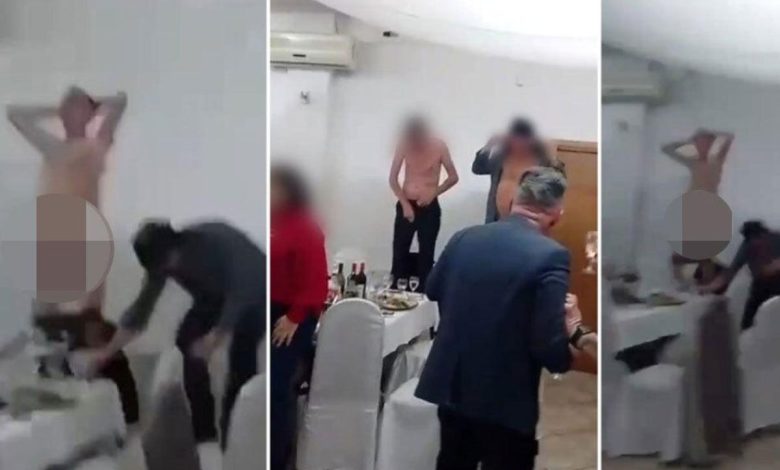 Snimke sa proslave proširile su se društvenim mrežama. Na videu se vidi gost koji se penje na sto, spušta hlače i pleše go dok ga dio okupljenih bodri smijehom i povicima, prenosi Index.hr.