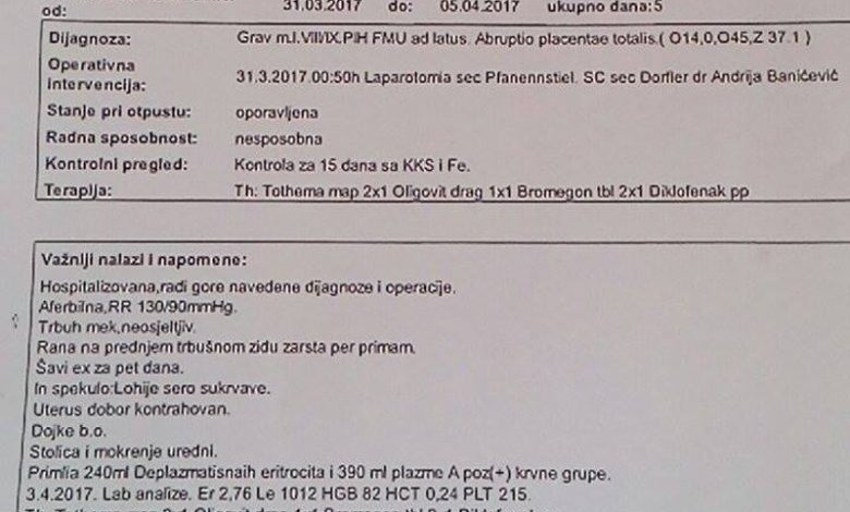 – Moja supruga i dijete su bili u redu, sve do te noći. Ljekar iz Doma zdravlja vodio je trudnoću moje supruge i sve je bilo u redu. Beba se normalno razvijala, trudnoća je bila uredna i nije bilo nikakvih komplikacija – rekao je Tahirović, koji je uz ove tvrdnje priložio i izvod iz kartona vođenog tokom trudnoće.