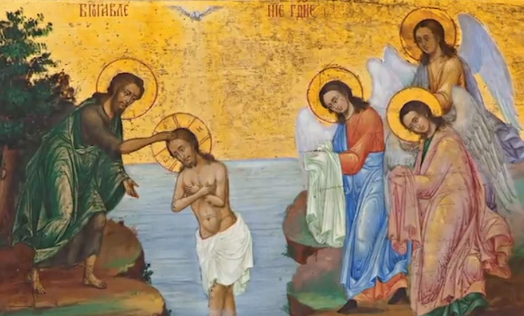 Duh Sveti je u obliku svjetlosnog goluba, kako je zapisano, sletio na glavu Sina Božijeg, a potom su se nebesa otvorila i čuo se glas Boga Oca: “Ovo je sin moj ljubezni koji je po mojoj volji”.