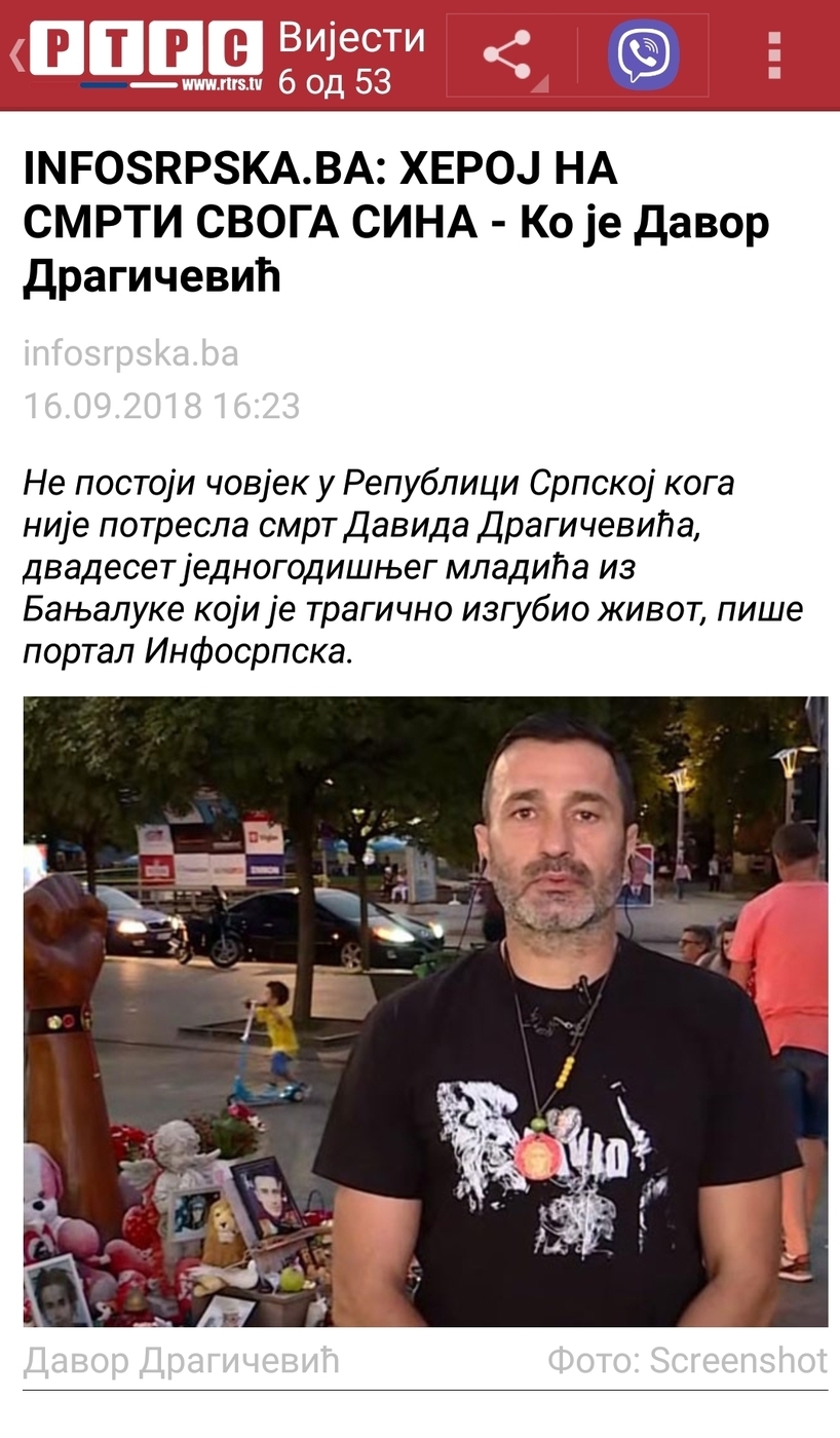 ''Šta hoće Davor Dragičević koji je uredno obrijan, ošišan i dotjeran i bez trunke emocije. . . '', počinje tekst portal ''Infosrpska'', a prenosi SRNA i Javni servis Republike Srpske (RTRS). U tekstu pod naslovom ''Heroj na smrti svoga sina'' iznesene su brojne optužbe i uvrede na račun Davora Dragičevića.
