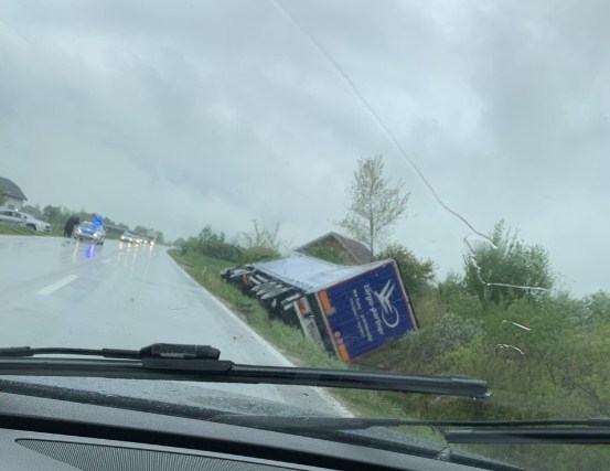 Na putu prema Prijedoru, u mjestu Kamičani s puta je sletio kamion, te je saobraćaj usporen.