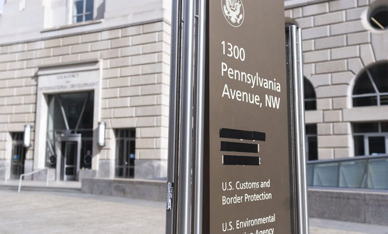 Naziv agencije na tabli ispred njenog sedišta u Vašingtonu prelijepljen je trakom, a njena zastava je spuštena.