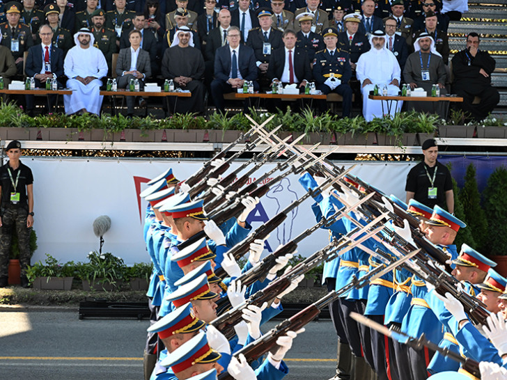 Današnjoj vojnoj paradi prisustvovali su predsjednik Ujedinjenih Arapskih Emirata, delegacija Kraljevine Bahrein, prestolonaslednik Dubaija, predsjednici skupština i vlada Srbije i Srpske, predsjednik Srpske, srpski član Predsjedništva BiH, ministri u vladama Srbije i Srpske, članovi Skupštine Crne Gore, zamjenik premijera Republike Sjeverne Makedonije, ministar odbrane Mađarske, načelnik Generalštaba OS Republike Azerbejdžan, načelnik Zajedničkog štaba OS BiH, načelnik štaba vazduhoplovstva i svemira OS Republike Francuske, komandant Nacionalne Garde Ohaja, članovi kolegijuma ministra odbrane i načelnika Generalštaba, predstavnici diplomatskog i vojno-diplomatskog kora, navodi se u saopštenju Ministarstva odbrane.
