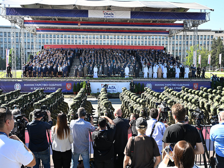 Velika vojna parada „Snaga jedinstva“, kojoj su prisustvovali predsjednik Srbije i vrhovni komandant Vojske Srbije Aleksandar Vučić, ministar odbrane Bratislav Gašić i komandant parade načelnik Generalštaba Vojske Srbije general Milan Mojsilović, održana je danas kod Palate "Srbija" na Novom Beogradu.